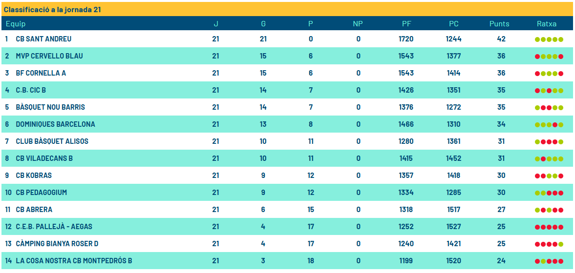 El CB Sant Andreu ha celebrat la gesta publicant una fotografia de l’equip a les xarxes socials. “Ens hem divertit, aquesta és la clau de la temporada”, afirmen. Un peu de foto que assevera: “Al acabar cadascú hem definit amb 1 o 2 paraules la temporada i crec q aquesta és la millor definició de la temporada i d’aquest grup: “diversió”, ‘família’, “invictes”, “barbacoa”, “amics’… ara venen nous reptes i continuarem disfrutant com fins ara”.