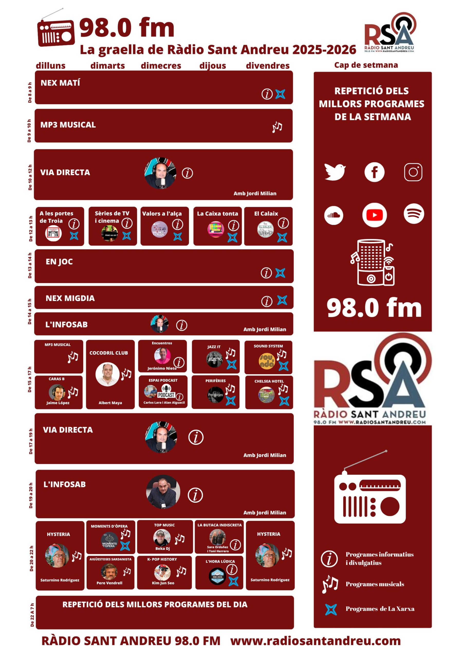 Dilluns | A les portes de Troia | Esports en xarxa | Informatiu La Xarxa / L'InfoSAB | Jazz Fm | |||||||||