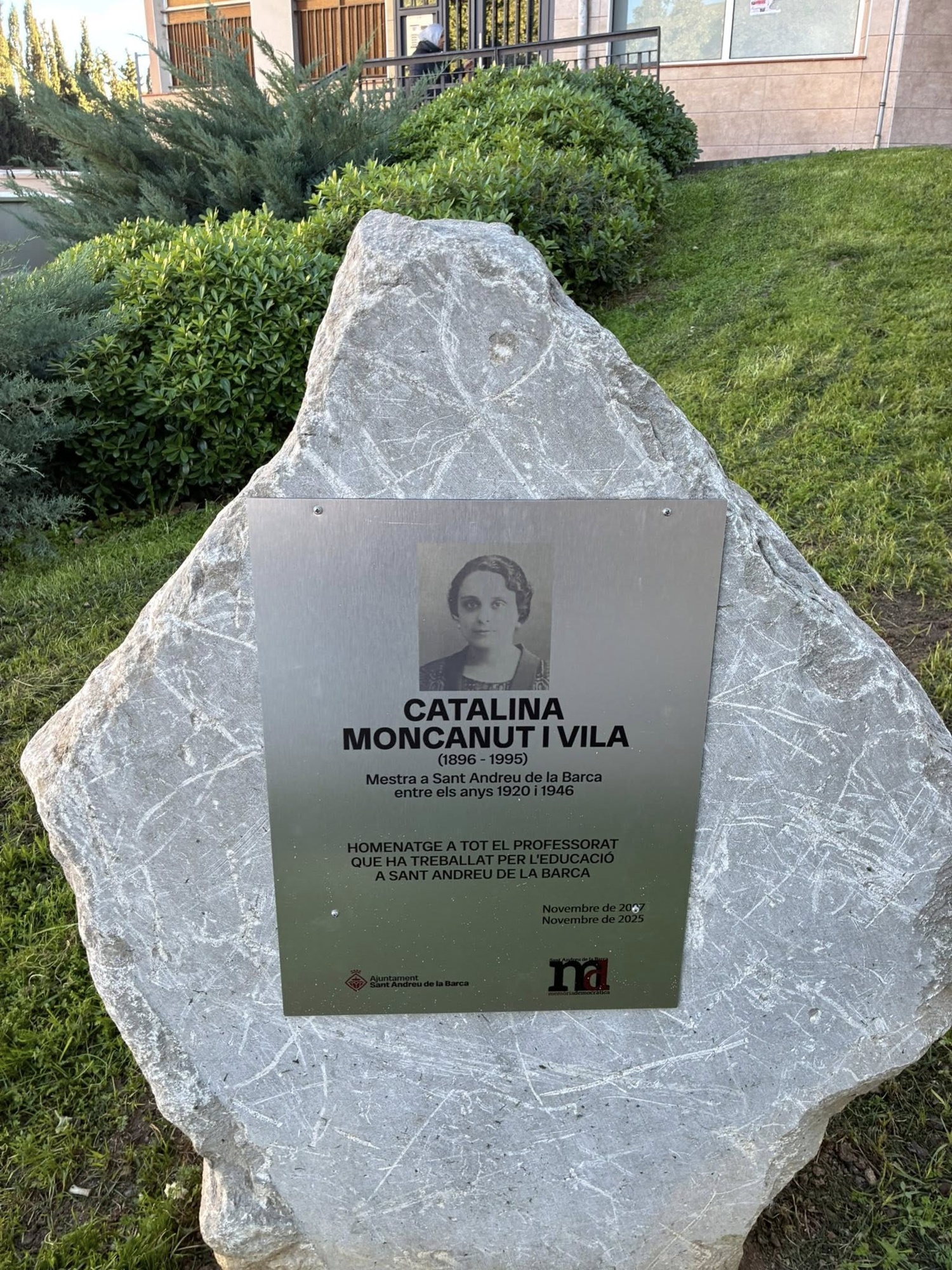 En el marc de la 2a Setmana de la Memòria Democràtica, Sant Andreu de la Barca ha viscut aquest cap de setmana un emotiu acte de renovació de la placa commemorativa dedicada a Catalina Moncanut i Vila (1896–1995), la mestra que va exercir al municipi entre els anys vint i el 1946 i que és recordada per la seva vocació, compromís i dedicació en temps especialment difícils.