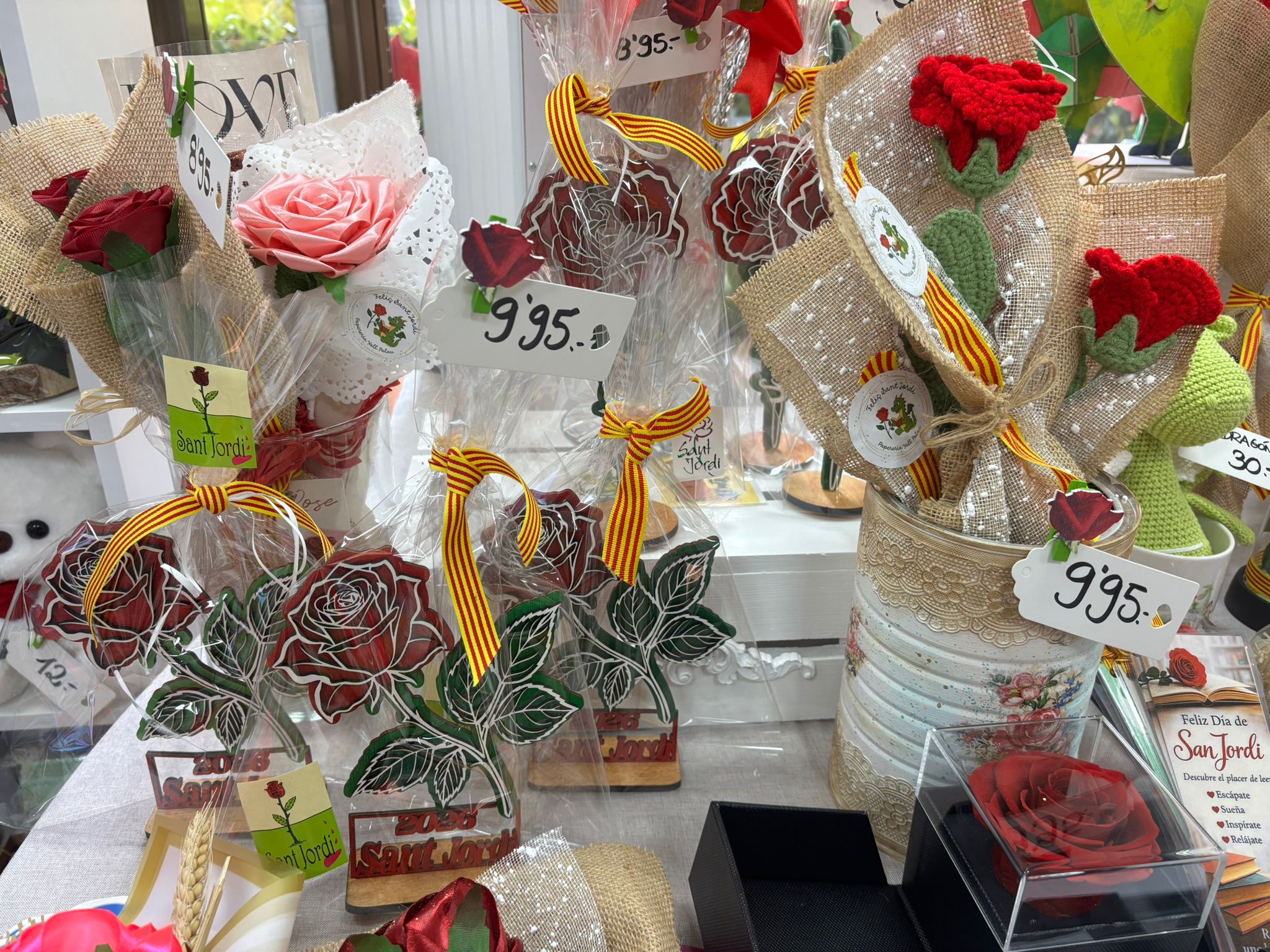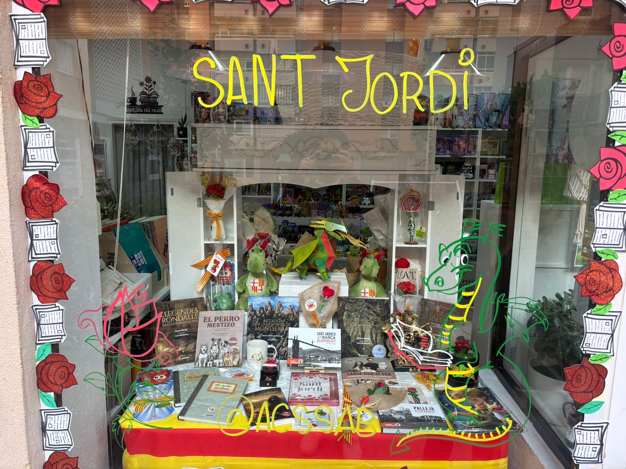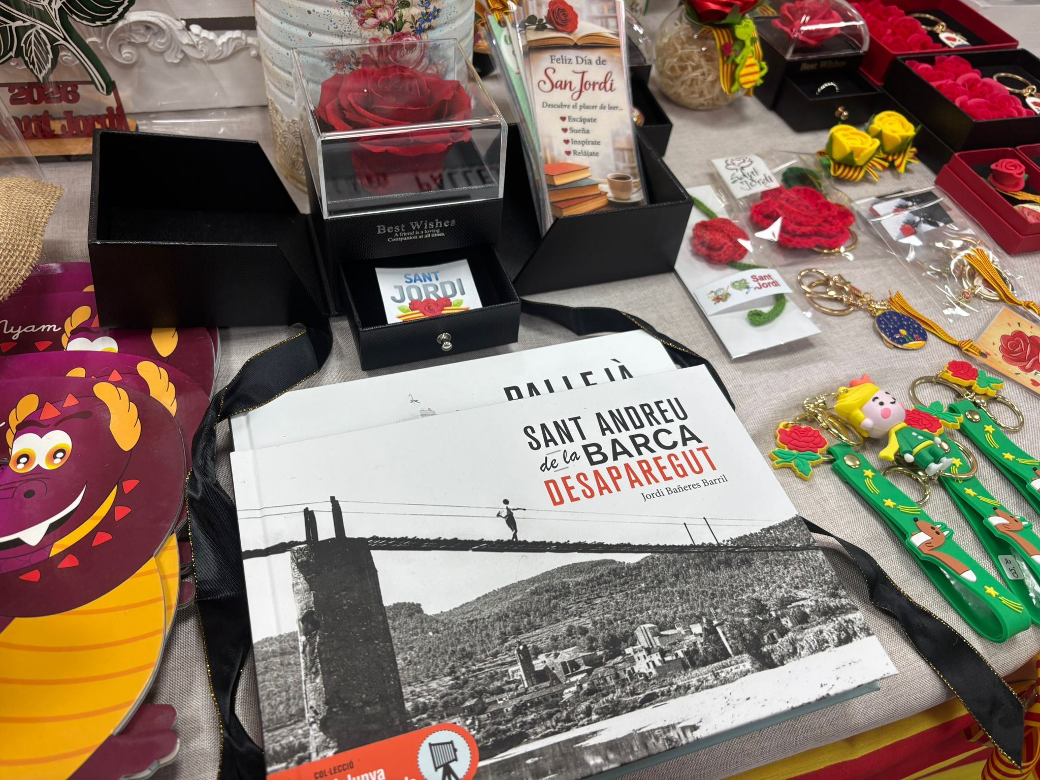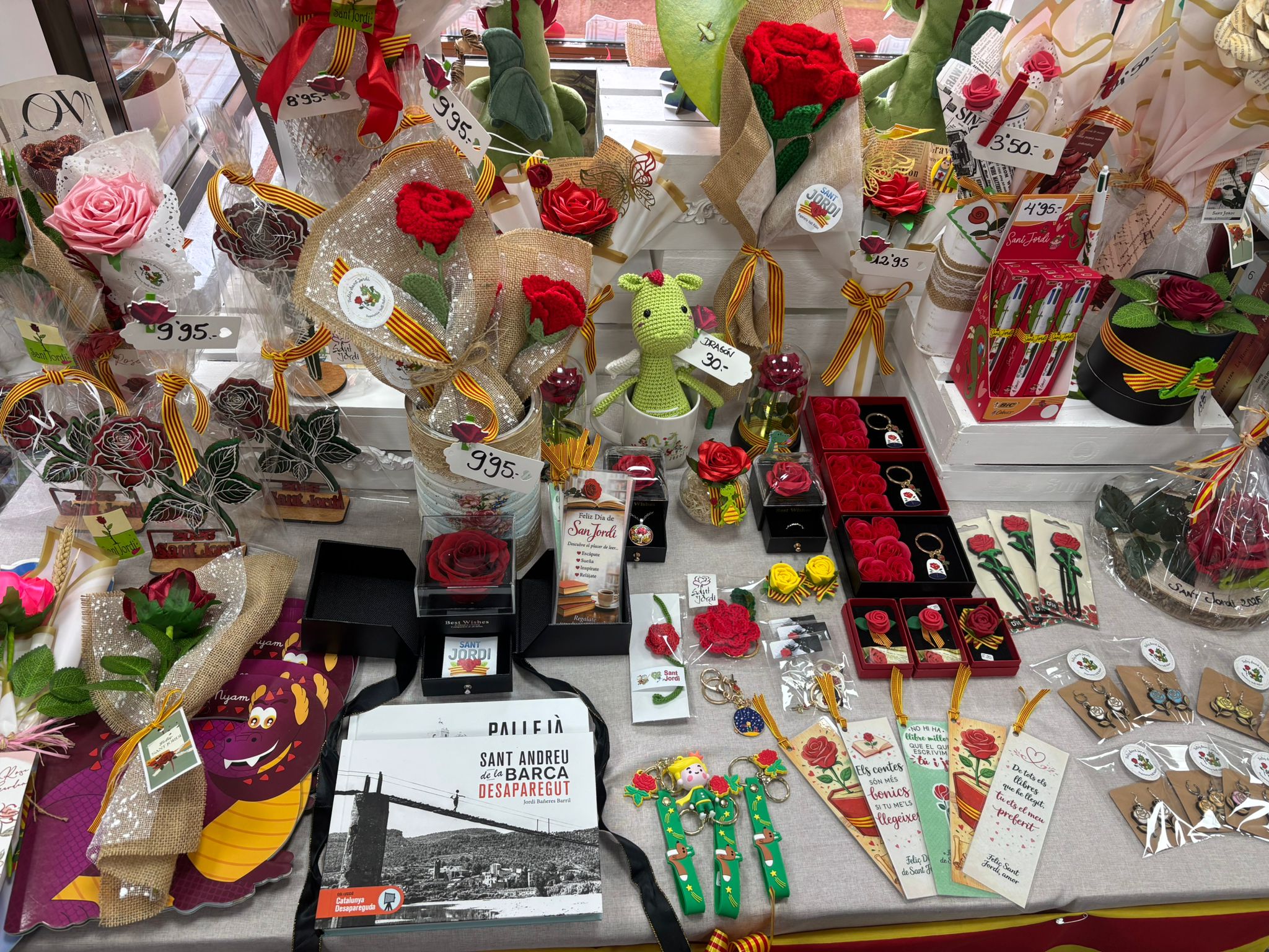 La seva regent, Sandra Saugar, assegura que des de Setmana Santa ja va iniciar la preparació de la campanya de Sant Jordi. “Junt amb llibres, tenim roses fetes a mà, punts de llibre i detalls temàtics”, explica. “Desgraciadament la literatura no té molta força a Sant Andreu de la Barca”, lamenta.