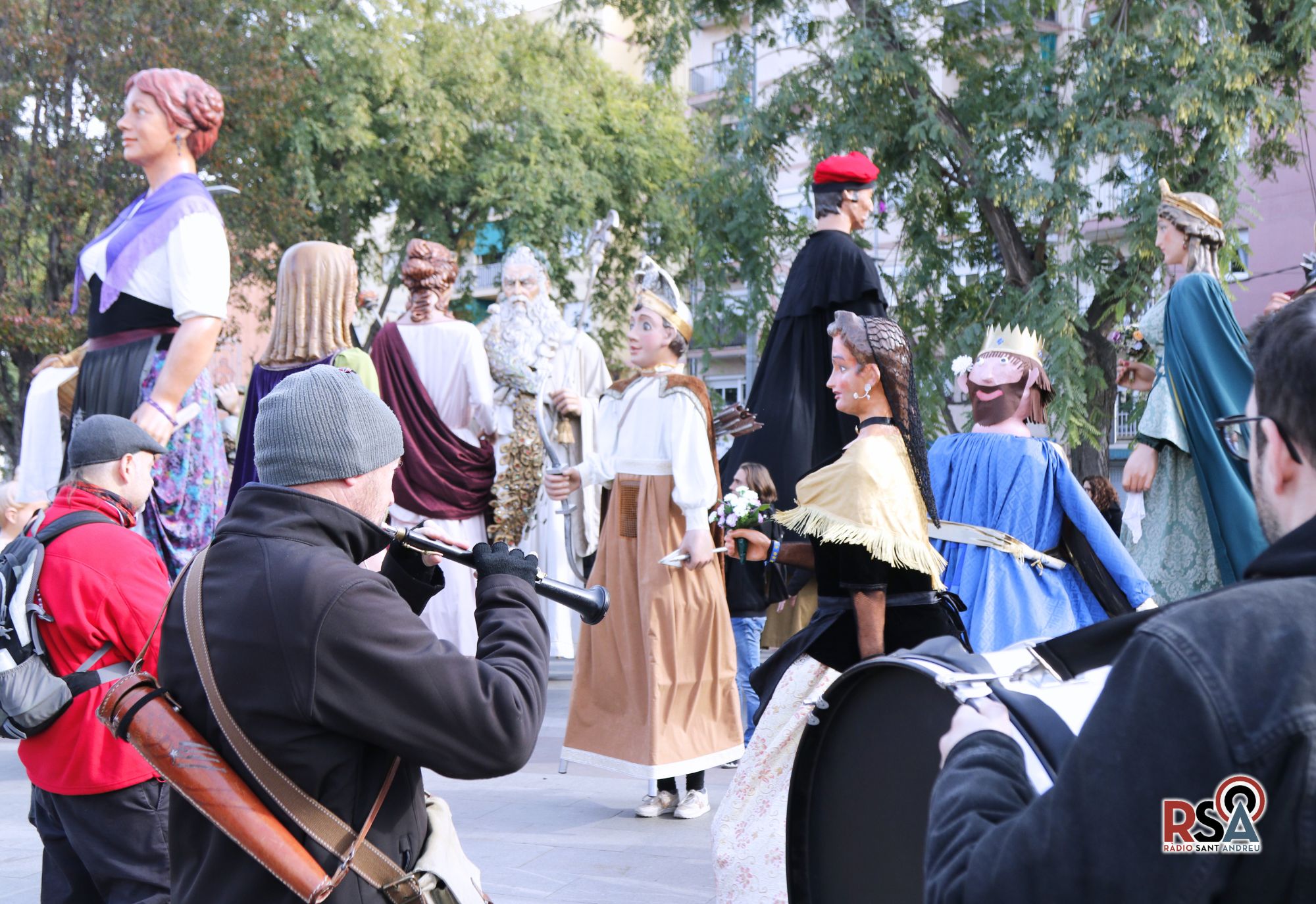 Els músics que acompanyen habitualment l’Andreu i la Quimeta, Andreu Archs i Peyo Zuñiga, també viuen la celebració amb emoció, ja que comparteixen tres dècades de trajectòria juntament amb la colla. “És una celebració molt esperada. Feia molt temps que en teníem ganes, que els gegants complissin anys i poder celebrar tota aquesta història. Estem mitjanament satisfets de fer aquestes coses.”