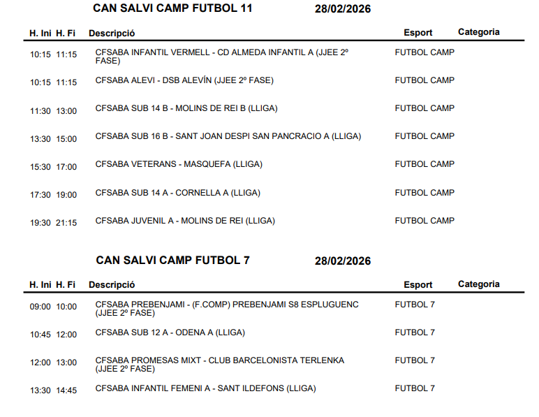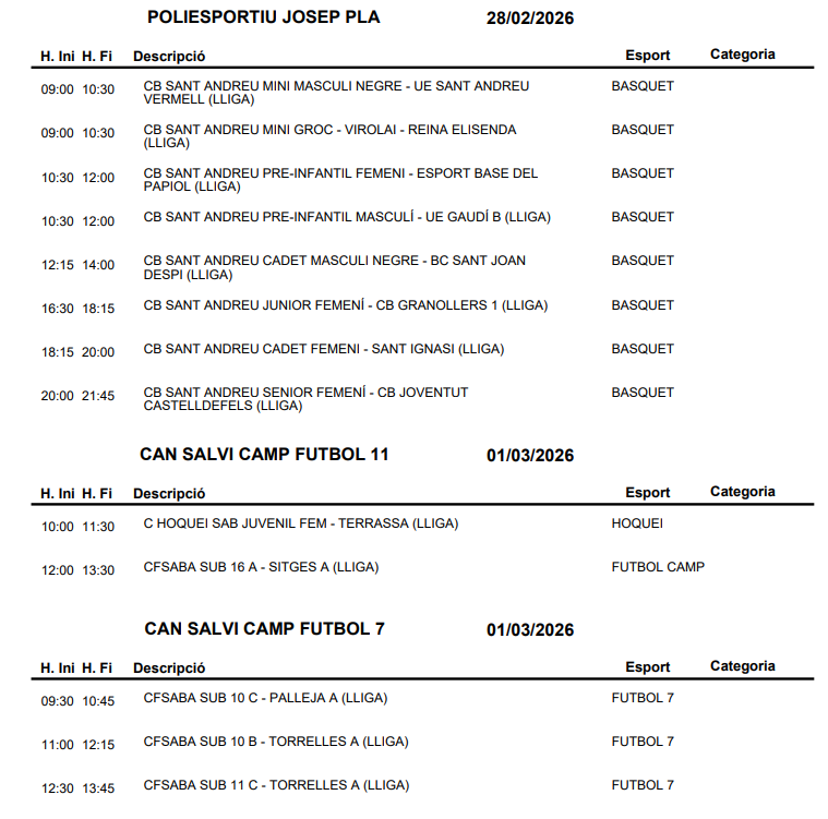 L’Agenda esportiva del cap de setmana a Sant Andreu de la Barca (28 febrer – 1 març)