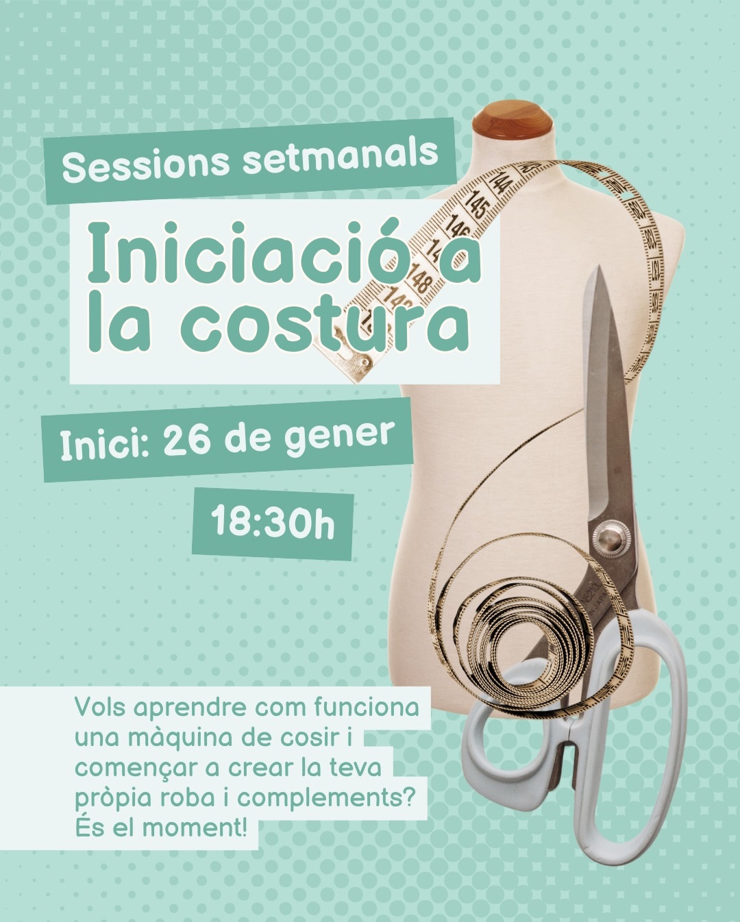 Avui dilluns a les 18:30h es dona el tret de sortida als tallers, amb el de costura. Una iniciativa que també compta amb classes de guitarra i un club de lectura, en aquest cas, amb sessions per acordar.