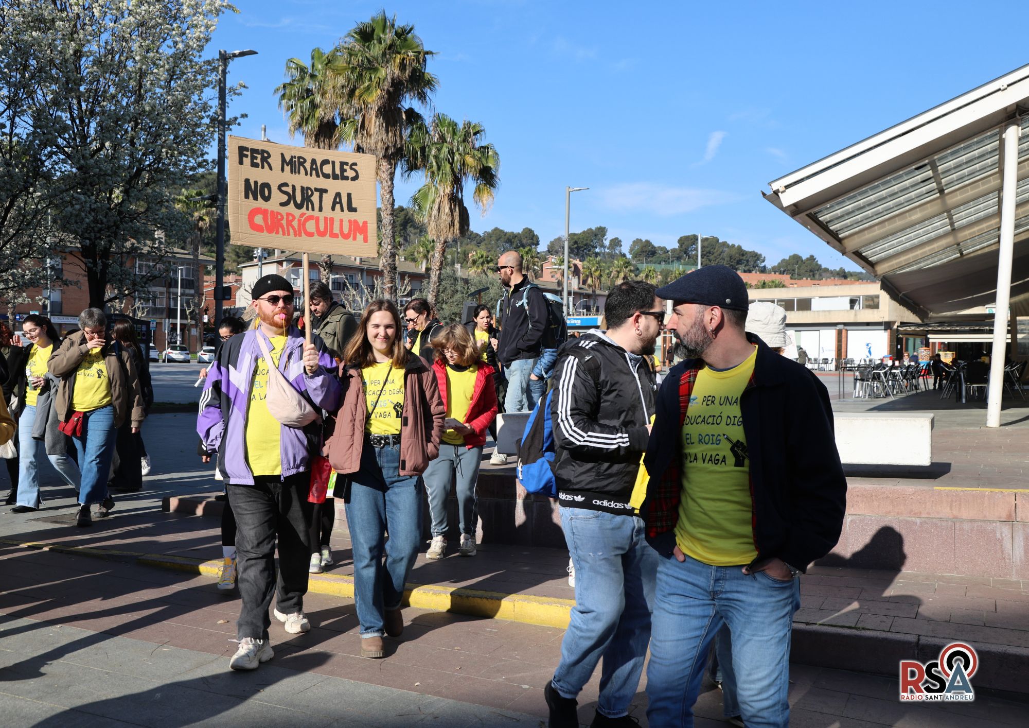 Des de primera hora del matí, docents de tot el territori s’han organitzat per participar en la mobilització. A Sant Andreu de la Barca, per exemple, desenes de professors s’han concentrat a la plaça Federico García Lorca abans de desplaçar-se en ferrocarril fins a Barcelona.