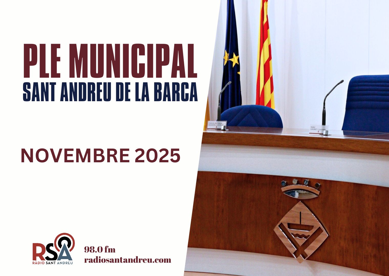 Ràdio Sant Andreu emeterà en directe el ple municipal aquets dijous a partir de les 19 h. Una hora abans l’Audiència Pública en directe també als 98.0 fm, radiosantandreu.com i als dispositius intel·ligents de Google i Alexa.